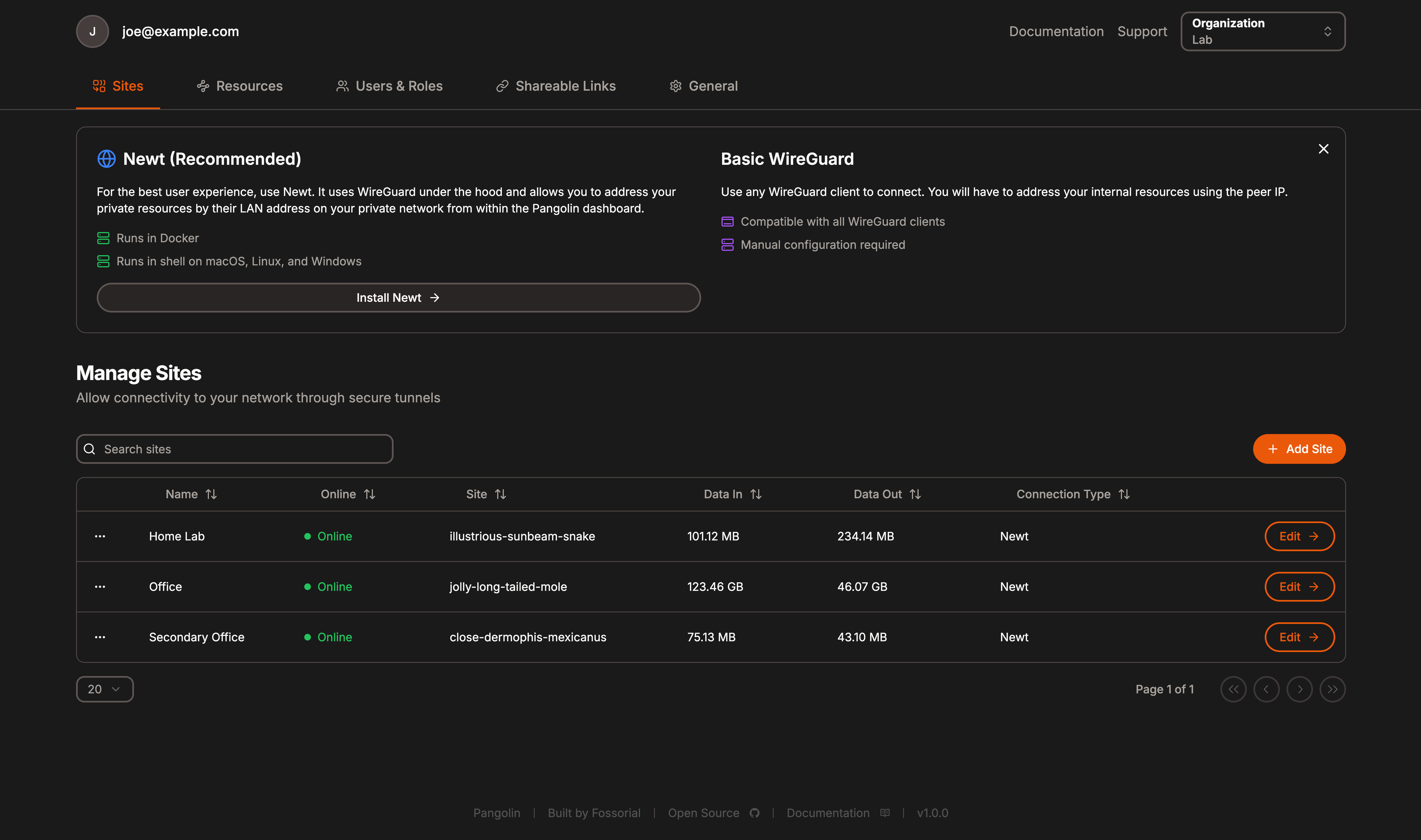 Pangolin packages everything you need for seamless application access and exposure into one cohesive platform.