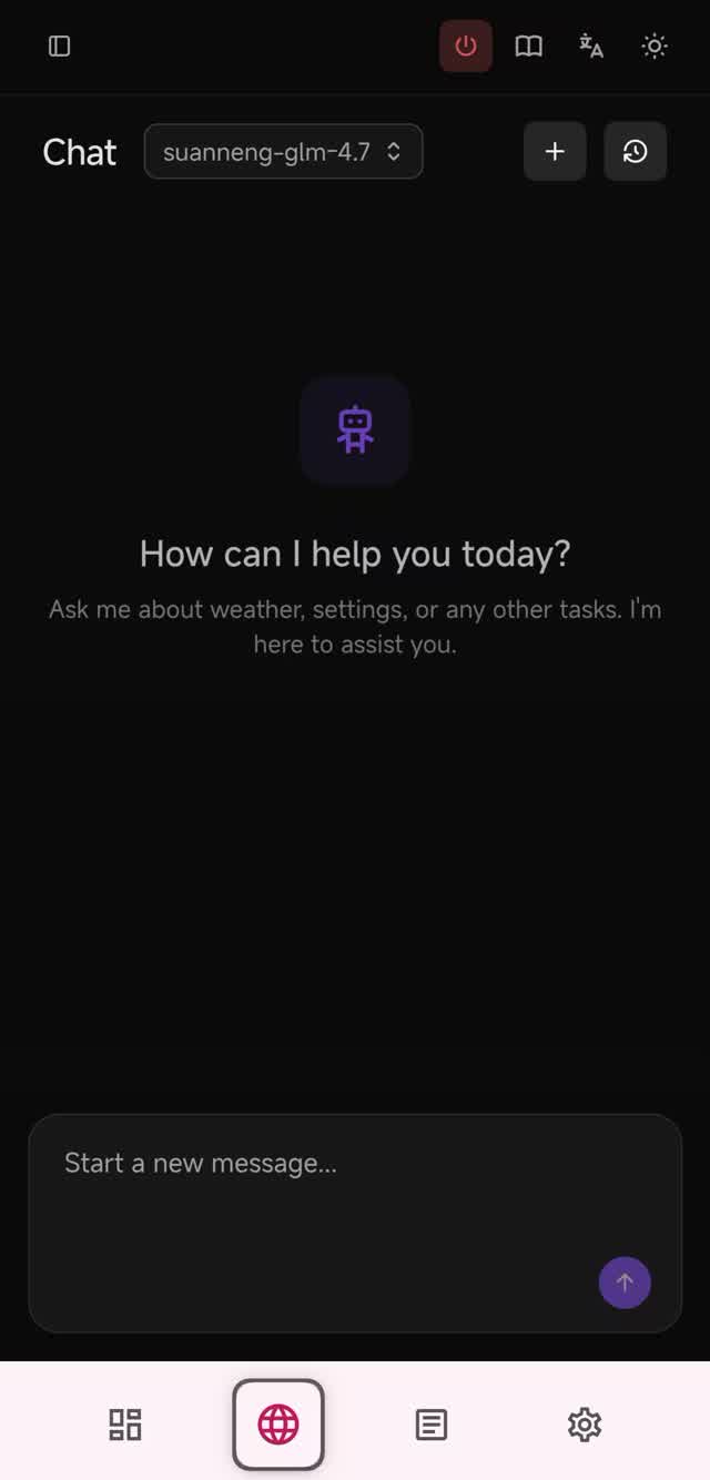 The WebUI Launcher provides a browser-based interface for configuration and chat. This is the easiest way to get started — no command-line knowledge required.